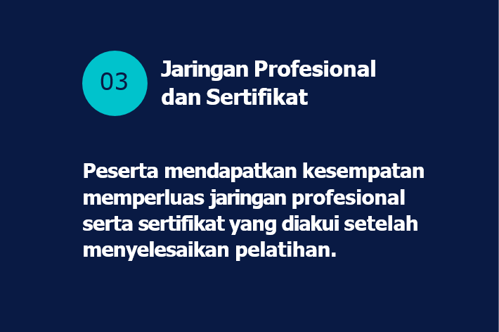 Setiap sesi pelatihan dirancang dengan materi mendalam yang relevan dan disusun oleh para ahli berpengalaman, memastikan peserta mendapatkan pengetahuan yang up-to- date. Pembicara profesional kami mampu menyampaikan materi dengan efektif, sehingga mudah dipahami.