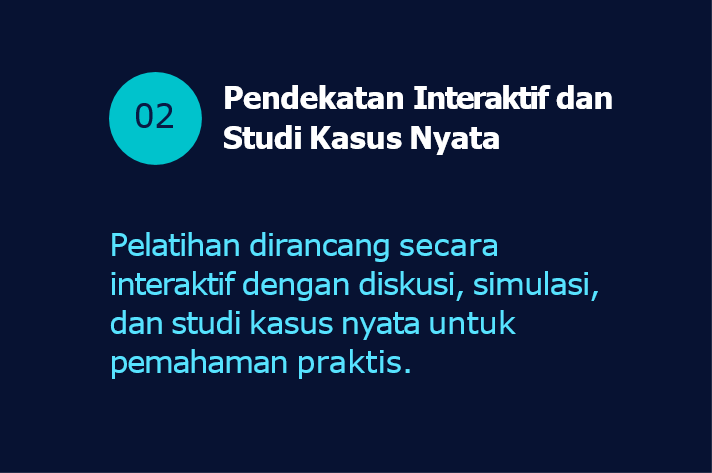 Peserta memiliki kesempatan untuk berinteraksi langsung dengan pembicara dan peserta lainnya, memungkinkan diskusi yang mendalam. Pelatihan juga mencakup studi kasus nyata dan simulasi interaktif yang membantu peserta menerapkan teori ke dalam praktik.